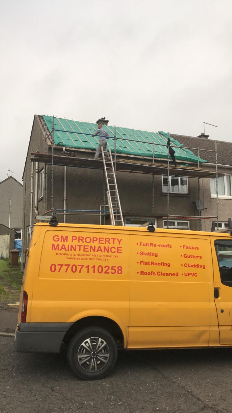 Are you in need of a qualified roofing contractor? GM Property Maintenance is an established and professional roofing and property maintenance company out of Coatbridge covering Glasgow, Cumbernauld and Airdrie. We focus on several roofing services. These include roof repair, roof replacement as well as roughcasting for improved property appearance and insulation. It is sometimes easy to underestimate the importance of having a well-constructed roof. That is why our Coatbridge based roofing company take pride in ensuring your home protected from the famous Scottish elements. Whether you’re looking for quality roof installation or roughcasting for improved insulation, our roofers and property maintenance specialists can help.